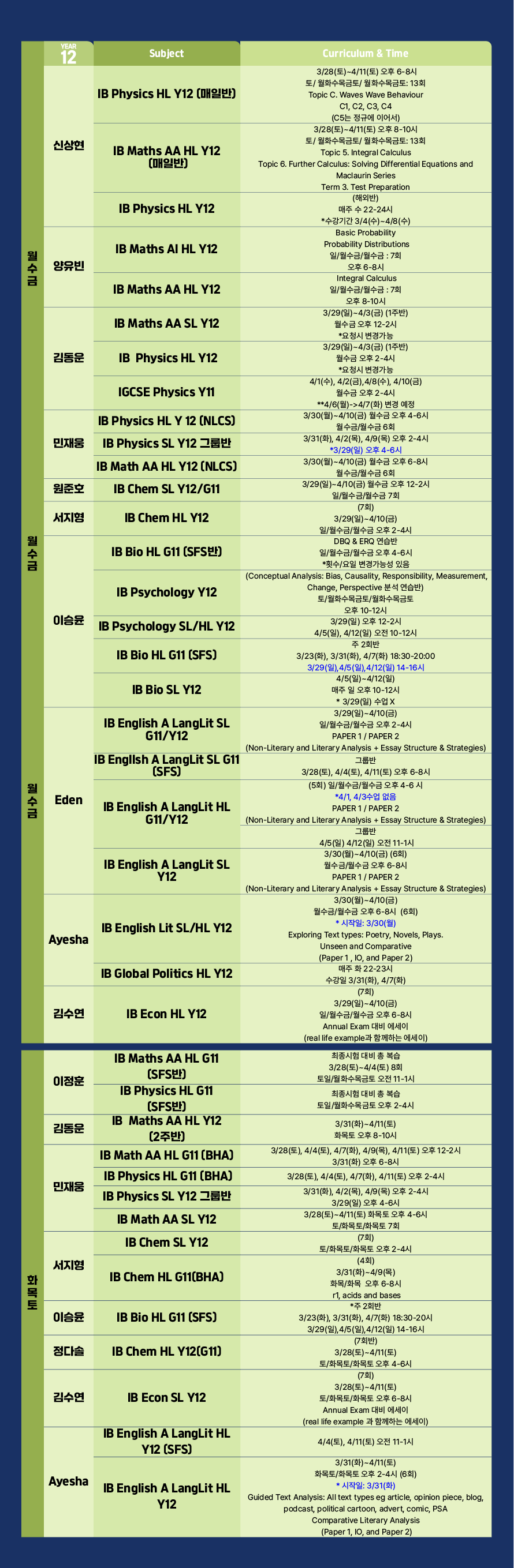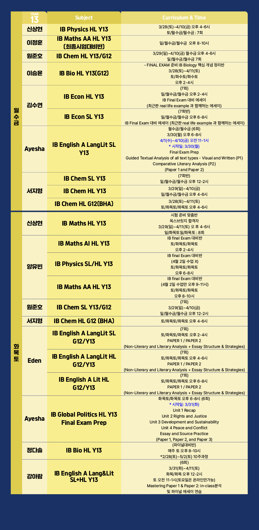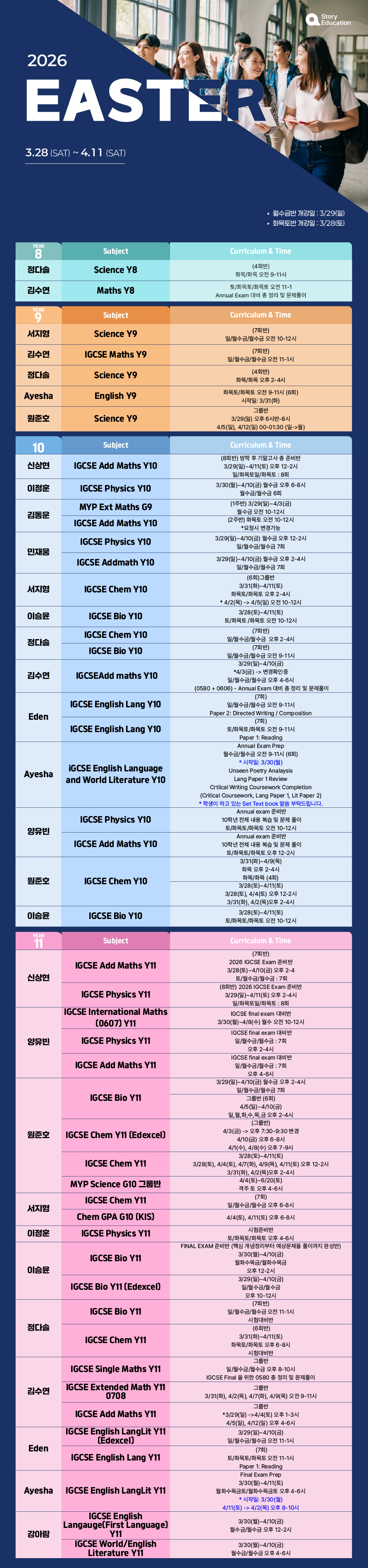 2026년 이스터특강 스케줄